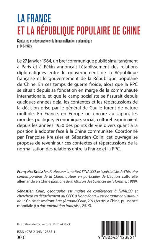 Le 27 janvier 1964, un bref communiqué publié simultanément à Paris et à Pékin annonçait l'établissement des relations diplomatiques entre le gouvernement de la République française et le gouvernement de la République populaire de Chine. En ces temps de guerre froide, alors que la RPC se situait depuis sa fondation en marge de la communauté internationale, les contextes et les répercussions de la décision prise par le général de Gaulle furent de nature multiple. Cet ouvrage se propose de revenir sur ces contextes et répercussions de la normalisation des relations entre la France et la RPC.