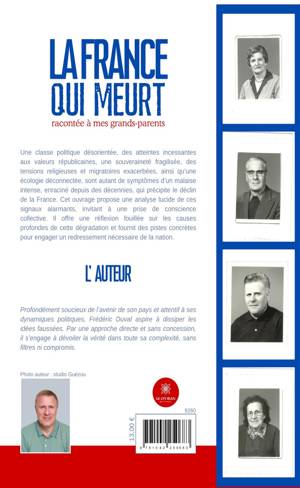 Une classe politique désorientée, des atteintes incessantes aux valeurs républicaines, une souveraineté fragilisée, des tensions religieuses et migratoires exacerbées, ainsi qu'une écologie déconnectée, sont autant de symptômes d'un malaise intense, enraciné depuis des décennies, qui précipite le déclin de la France. Cet ouvrage propose une analyse lucide de ces signaux alarmants, invitant à une prise de conscience collective. Il offre une réflexion fouillée sur les causes profondes de cette dégradation et fournit des pistes concrètes pour engager un redressement nécessaire de la nation.