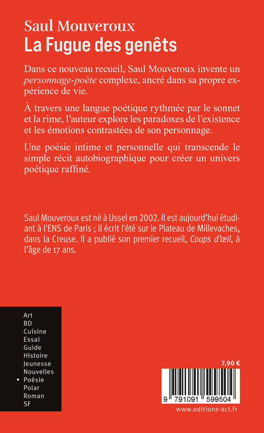 Dans ce nouveau recueil, Saul Mouveroux invente un personnage-poète complexe, ancré dans sa propre expérience de vie. À travers une langue poétique rythmée par le sonnet et la rime, l’auteur explore les paradoxes de l’existence et les émotions contrastées de son personnage. Une poésie intime et personnelle qui transcende le simple récit autobiographique pour créer un univers poétique raffiné.