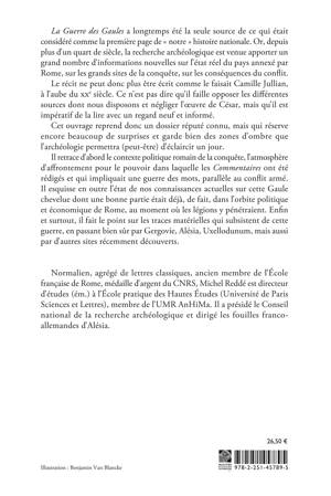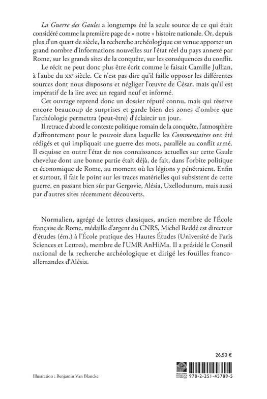 Il retrace d’abord le contexte politique romain de la conquête, l’atmosphère d’affrontement pour le pouvoir dans laquelle les Commentaires ont été rédigés et qui impliquait une guerre des mots, parallèle au conflit armé. Il esquisse en outre l’état de nos connaissances actuelles sur cette Gaule chevelue dont une bonne partie était déjà, de fait, dans l’orbite politique et économique de Rome, au moment où les légions y pénétraient. Enfin et surtout, il fait le point sur les traces matérielles qui subsistent de cette guerre, en passant bien sûr par Gergovie, Alésia, Uxellodunum, mais aussi par d’autres sites récemment découverts.