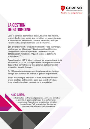 Opérationnel et 100 % à jour, intégrant les nouveautés de la loi de finances 2022, cet ouvrage traite de façon précise chacun des points à connaître pour bien gérer un patrimoine : droit immobilier, fiscalité, finance...