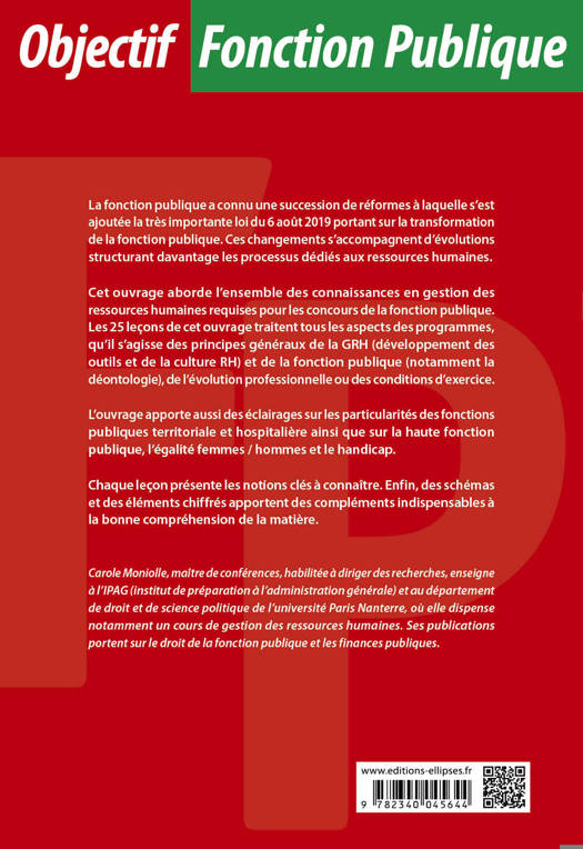 Cet ouvrage aborde l’ensemble des connaissances en gestion des ressources humaines requises pour les concours de la fonction publique et propose :
