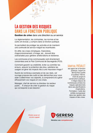 Illustré de nombreux exemples et de cas réels, cet ouvrage propose des outils et des démarches pour vous aider à déterminer vos objectifs, à comprendre et à gérer efficacement vos risques et vos crises.