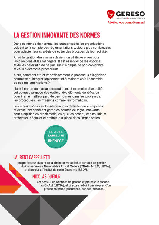 Les auteurs s’inspirent d’interventions réalisées en entreprises et expliquent comment gérer les normes de façon innovante pour simplifier les problématiques qu’elles posent, et ainsi mieux orchestrer, négocier et arbitrer leur place dans l’organisation.