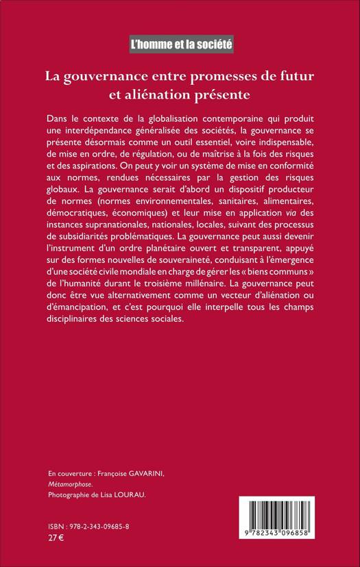 Dans le contexte de la globalisation contemporaine qui produit une interdépendance généralisée des sociétés, la gouvernance se présente désormais comme un outil essentiel de mise en ordre, de régulation, ou de maîtrise à la fois des risques et des aspirations. Elle serait d'abord un dispositif producteur de normes, mais aussi l'instrument d'un ordre planétaire ouvert et transparent conduisant à l'émergence d'une société civile mondiale en charge des « biens communs » de l'humanité. La gouvernance : un vecteur d'aliénation ou d'émancipation ?