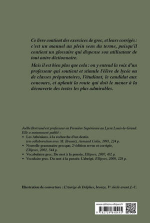 Ce livre contient des exercices de grec, et leurs corrigés : c’est un manuel au plein sens du terme, puisqu’il contient un glossaire qui dispense son utilisateur de tout autre dictionnaire.