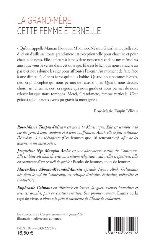 « Qu’on l’appelle Maman Doudou, Mbombo, Née ou Gran’man, qu’elle soit d’ici ou d’ailleurs, toute grand-mère est exceptionnelle pour chacune et pour chacun de nous. Elle demeure à jamais dans nos coeurs et dans nos mémoires ainsi que vous le verrez dans cet ouvrage. Elle est le lien qui nous rattache au passé et nous donne les clés pour affronter l’avenir. Au moment de faire face à une difficulté, c’est sa force qui nous habite. Quand nous sommes blessés, c’est sa philosophie qui nous permet de rester dignes. Quand nous devons choisir un chemin, c’est sa sagesse qui nous guide et nous permet de nous relever lorsque nous tombons. Merci, Grand-mère, femme verticale. C’est grâce à toi que nous avons pu gravir la montagne ». Rose-Marie Taupin Pélican