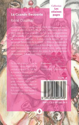 La Grande Beuverie tient de l'écriture automatique, de la pochade ubuesque, de Diderot, de Scarron, de Roussel, de Vian... Pour savoir de quoi ce texte cocasse, léger, inventif et dérangeant retourne, allez donc interroger Aham Egomet p. 110 ! Mais dit-il vrai, Aham Egomet ? Et le narrateur ? Des leçons de Totochabo, que faut-il penser ?