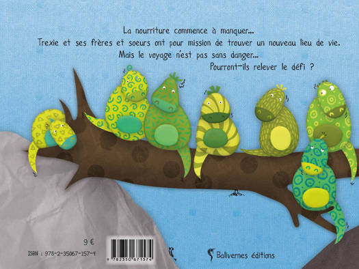 La nourriture commence à manquer ! La famille Dinosaure doit quitter son nid pour trouver un nouvel endroit où vivre. Mais des oeufs viennent d'éclore et les parents doivent veiller sur les bébés, donc ce seront les grands enfants qui partiront en quête de ce lieu. Les parents ont confiance en eux et leur répètent que tout problème a une solution, quelles que soient les difficultés qu'ils pourraient rencontrer. Ils croiseront ainsi des énormes diplodocus, un volcan grondant et crachant des flammes, un marécage et une falaise, mais à chaque fois, ils sauront se débrouiller et finiront par trouver un petit paradis ! Un nouveau livre-jeu dans la série des histoires en galets : l'enfant aura plaisir à écouter l'aventure de ces petits dinosaures encore et encore, mais il s'amusera aussi seul ou avec ses parents à chercher celui avec des petits coeurs (même si nous savons bien que ce sera l'enfant qui le trouvera le plus vite !).