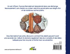 Un soir d'hiver, l'ourson Barnabé est abandonné dans une décharge. Heureusement, son chemin va croiser celui d'un grand-père aux doigts d'or et de nombreux autres jouets... Avec Barnabé et ses amis, découvre comment les objets peuvent avoir une seconde vie. L'album te donnera également des éco conseils et des idées ludiques pour les recycler et limiter leur accumulation (en bonus, des activités manuelles malignes, pour créer sans dépenser !)