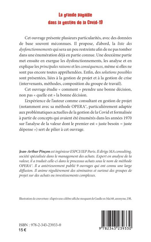 Cet ouvrage propose, d’abord, la liste des dysfonctionnements liés à la gestion de la pandémie de Covid-19. Ensuite, il sera question d’analyser ces dysfonctionnements, et d’en expliquer les principales raisons et les conséquences, même si elles ne sont pas encore toutes appréhendées. Enfin, des solutions possibles sont présentées, liées à la gestion de projet et à la gestion de crise (intervenants, méthodes, composition du groupe de travail). Il s’agit donc de déterminer « comment » prendre une bonne décision, non pas de savoir « quelle est » la bonne décision. L’expérience de l’auteur comme consultant en gestion de projet sert de pilier à cette réflexion.