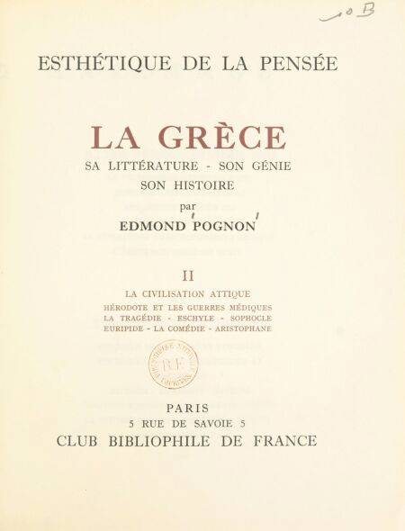 4. La Grèce, sa littérature, son génie, son histoire (2). La civilisation attique. Hérodote et les guerres médiques, la tragédie, Eschyle, Sophocle, Euripide, la comédie, Aristophane
