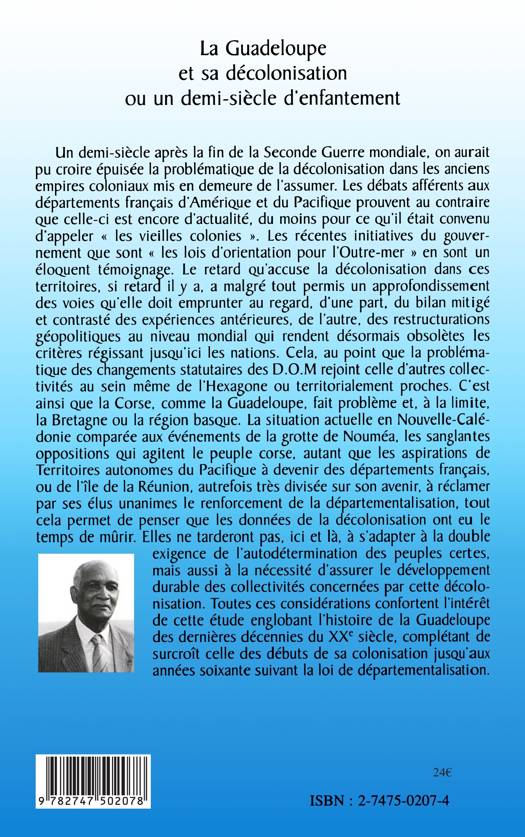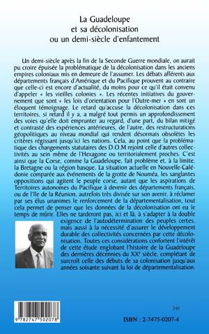 Les débats afférents aux départements français d'Amérique et du Pacifique prouvent que la problématique de la décolonisation est encore d'actualité. Les données de la décolonisation ne tarderont pas à s'adapter à la double exigence de l'autodétermination des peuples certes, mais aussi à la nécessité d'assurer le développement durable des collectivités concernées par la décolonisation. Toutes ces considérations confortent l'intérêt de cette étude englobant l'histoire de la Guadeloupe des dernières décennies du XXe siècle, complétant de surcroît celle des débuts de sa colonisation jusqu'aux années soixante suivant la loi de départementalisation.