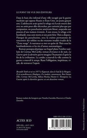 Roman postapocalyptique sur lequel plane l'ombre tutélaire de Cormac McCarthy, roman d'errance et de nuit, «La Guerre après la dernière guerre» imagine l'humanité d'après la fin de la civilisation. La cendre a enseveli la ville comme la guerre a enseveli le temps. Reste l'obligation, impérieuse, vitale, de retrouver l'espoir.
