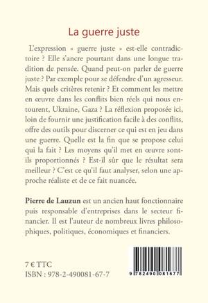 L'expression « guerre juste » est-elle contradictoire ? Elle s'ancre pourtant dans une longue tradition de pensée. Quand peut-on parler de guerre juste ? Par exemple pour se défendre d'un agresseur. Mais quels critères retenir ? Et comment les mettre en oeuvre dans les conflits bien réels qui nous entourent, Ukraine, Gaza ? La réflexion proposée ici, loin de fournir une justification facile à des conflits, offre des outils pour discerner ce qui est en jeu dans une guerre. Quelle est la fin que se propose celui qui la fait ? Les moyens qu'il met en oeuvre sont-ils proportionnés ? Est-il sûr que le résultat sera meilleur ? C'est ce qu'il faut analyser, selon une approche réaliste et de ce fait nuancée.