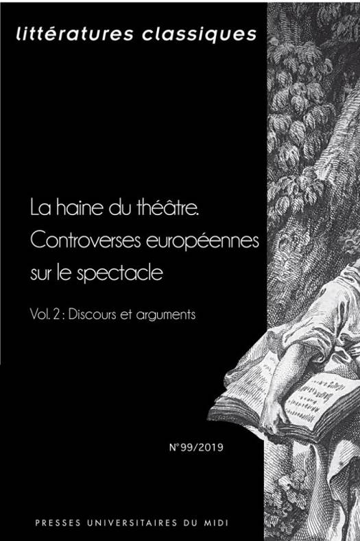 Ce 2e volume (vol. 1 : « Controverses et polémiques ») poursuit l'objectif de revenir sur l'histoire des controverses sur le théâtre en Europe, pour 3 raisons : elle a été très inégalement explorée ; elle l'a surtout été du point de vue de l'histoire des idées ; enfin, elle n'a presque jamais été envisagée à une échelle européenne. Or l'hostilité contre le théâtre, relancée par la professionnalisation, s'est traduite à partir des années 1570 par toute une série de crises à travers l'Europe ; elle a été entretenue par une ample production de traités et de pamphlets qui, très vivace jusqu'à la fin du XVIIIe siècle, a eu des prolongements jusqu'au milieu du XIXe siècle. Ces débats s'inscrivent dans un champ polémique plus large, dont les dynamiques et les épisodes particuliers sont essentiels du point de vue de l'histoire culturelle de la période ; ils possèdent des points d'intersection avec les querelles littéraires, dont on connaît le rôle structurant dans l'espace politico-culturel.