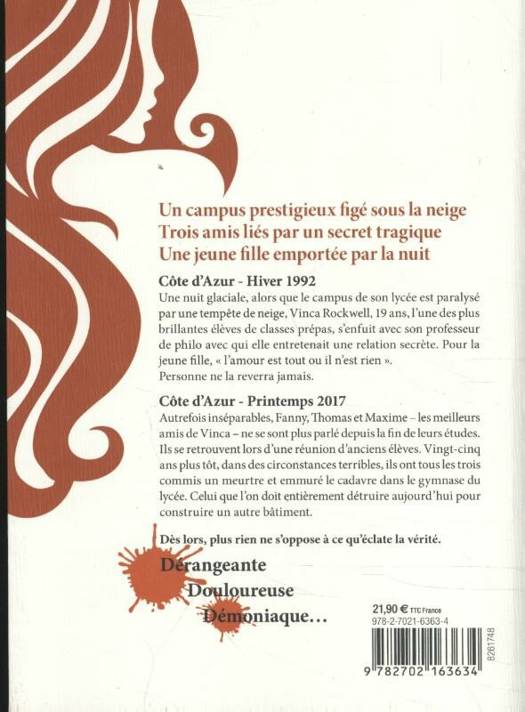 Autrefois inséparables, Fanny, Thomas et Maxime – les meilleurs amis de Vinca – ne se sont plus parlé depuis la fin de leurs études. Ils se retrouvent lors d’une réunion d’anciens élèves. Vingt-cinq ans plus tôt, dans des circonstances terribles, ils ont tous les trois commis un meurtre et emmuré le cadavre dans le gymnase du
