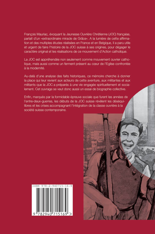François Mauriac, évoquant la Jeunesse Ouvrière Chrétienne (JOC) française, parlait d'un "extraordinaire miracle de Grâce". A la lumière de cette affirmation et des multiples études réalisées en France et en Belgique, il a paru utile et urgent de faire l'histoire de la JOC suisse à ses origines, pour dégager le caractère original et les réalisations de ce mouvement d'Action catholique spécialisé.