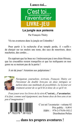 Vis tes aventures dans la jungle en Colombieâ! Pour partir à la recherche d’un temple perdu, il «Â suffit » de charger sur tes mulets une tente, des sacs de nourriture, deux machettes, des cordesâ- En espérant que les boas ne s’intéressent pas à ton chien Hirsute, que les crocodiles restent tranquilles et que les trafiquants en tout genre ne se mettent pas de la partieâ! À toi de jouerâ! Attention aux palpitationsâ!