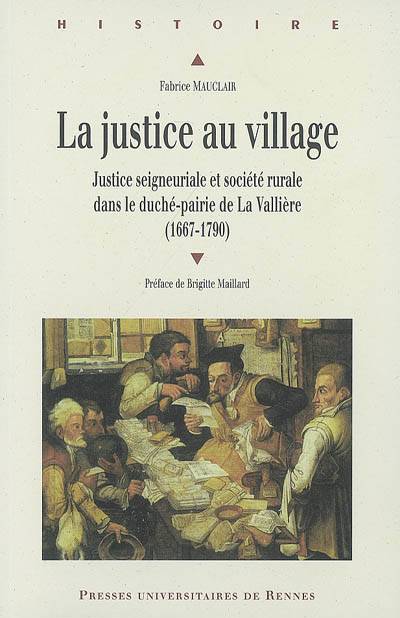 Parmi toutes les institutions judiciaires qui ont fonctionné en France avant la Révolution, les justices seigneuriales étaient sans nul doute les plus nombreuses ; en contact avec une très large portion de la population, alors essentiellement rurale, elles étaient présentes dans maintes localités. Pourtant, les « justices de village » sont encore mal connues. Le livre de Fabrice Mauclair se propose donc, en traitant le cas des trois tribunaux seigneuriaux du duché-pairie de La Vallière (situés en Touraine, Anjou et Maine), de découvrir une institution qui rendait de multiples services aux communautés rurales d'autrefois.