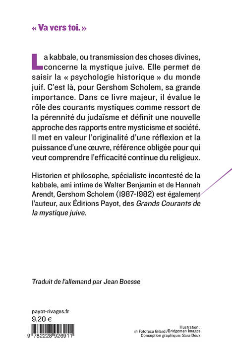 La kabbale, ou transmission des choses divines, concerne la mystique juive. Elle permet de saisir la « psychologie historique » du monde juif. C'est là, pour Gershom Scholem, sa grande importance. Dans ce livre majeur, il évalue le rôle des courants mystiques comme ressort de la pérennité du judaïsme et définit une nouvelle approche des rapports entre mysticisme et société. Il met en valeur l'originalité d'une réflexion et la puissance d'une oeuvre, référence obligée pour qui veut comprendre l'efficacité continue du religieux.