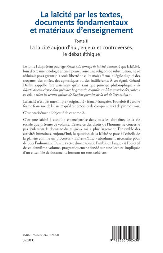 La laïcité par les textes, documents fondamentaux et matériaux d'enseignement (Tome 2)