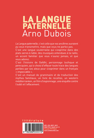 Premier roman d'Arnaud Dubois, «La Langue paternelle», est l'histoire étonnante de Gafdhi, père de famille aux visions colériques, absorbé dans les cartes de géographie, les récits de soldats de la Grande Armée et les souvenirs de son enfance égyptienne dans le Caire franco-arménien des années 1940. C'est également celle d'un homme qui s'est attaché à parler un français "impeccable" et à effacer toutes les "scories" langagières de ses ancêtres, un choix qui n'a pas été sans conséquence pour sa descendance. Faux roman familial guidé par une joyeuse loufoquerie, tour à tour livre de cuisine, film d'espionnage, western méditerranéen, manuel de grammaire et de traduction des mythes familiaux, «La Langue paternelle» est aussi une réflexion en contrepoint sur le rapport à la langue, l'appartenan