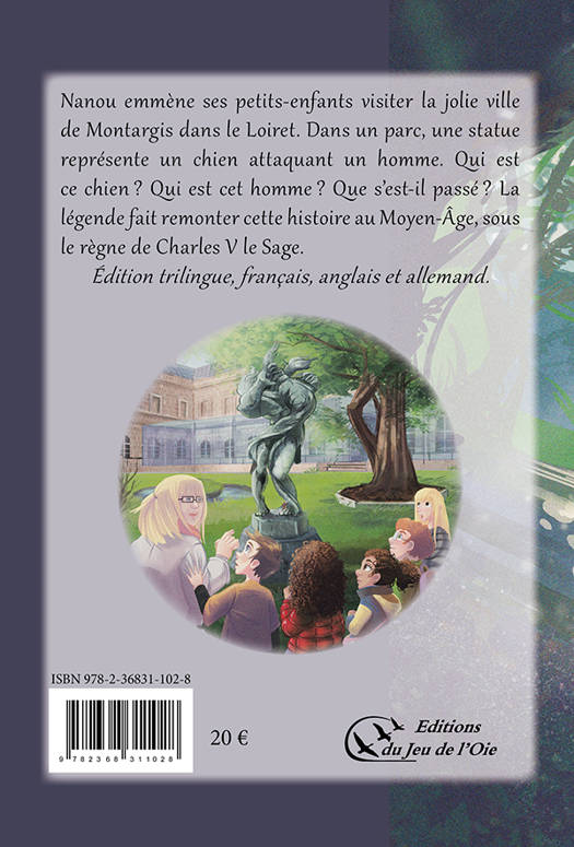 Nanou emmène ses petits-enfants visiter la jolie ville de Montargis dans le Loiret. Dans un parc, une statue représente un chien attaquant un homme. Qui est ce chien ? Qui est cet homme ? Que s’est-il passé ? La légende fait remonter cette histoire au Moyen-Âge, sous le règne de Charles V le Sage. Édition trilingue, français, anglais et allemand. À partir de 4 ans.