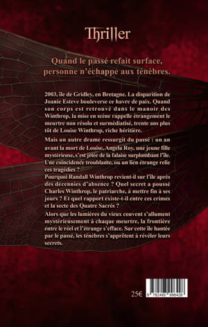 Quand le passé refait surface, personne n'échappe aux ténèbres. 2003, île de Gridley, en Bretagne. La disparition de Joanie Esteve bouleverse ce havre de paix. Quand son corps est retrouvé dans le manoir des Winthrop, la mise en scène rappelle étrangement le meurtre non résolu et surmédiatisé, trente ans plus tôt de Louise Winthrop, riche héritière . Mais un autre drame ressurgit du passé : un an avant la mort de Louise, Angela Roy, une jeune fille mystérieuse, s’est jetée de la falaise surplombant l’île. Une coïncidence troublante, ou un lien étrange relie ces tragédies ? Pourquoi Randall Winthrop revient-il sur l’île après des décennies d’absence ? Quel secret a poussé Charles Winthrop, le patriarche, à mettre fin à ses jours ? Et quel rapport existe-t-il entre ces crimes et la secte des Quatre Sacrés ? Alors que les lumières du vieux couvent s’allument mystérieusement à chaque meurtre, la frontière entre le réel et l’inexplicable s’efface. Sur cette île hantée par le passé, les ténèbres s’apprêtent à révéler leurs secrets.