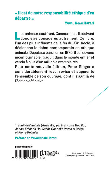 L'un des plus grands livres de la fin du XXe siècle. Comme l'écrit Yuval Noah Harari dans sa préface, il est de notre responsabilité éthique de le lire et de débattre de ses idées. Pour cette édition, qui est désormais l'édition définitive de "La Libération animale", Peter Singer a considérablement revu, révisé et augmenté l'ensemble de cet ouvrage incontournable qui a déclenché le débat contemporain sur la souffrance animale (éthique animale) et s'est vendu à plus d'un million d'exemplaires.