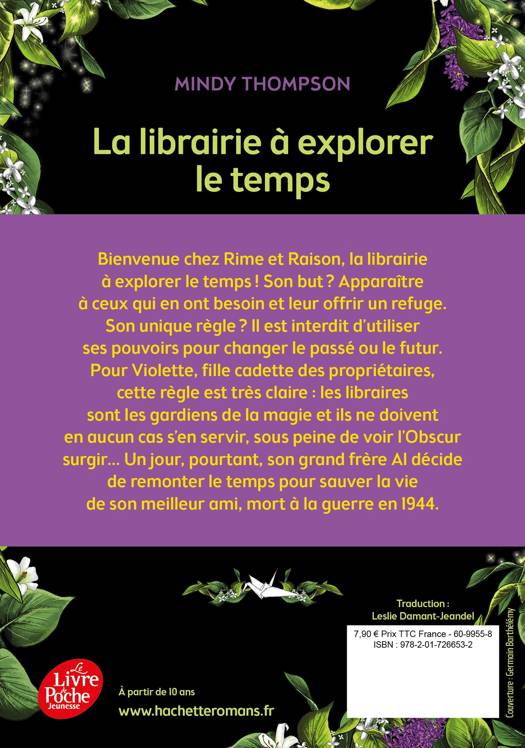 Bienvenue chez Rime et Raison, la librairie à explorer le temps ! Son but ? Apparaître à ceux qui en ont besoin et leur offrir un refuge. Son unique règle ? Il est interdit d’utiliser ses pouvoirs pour changer le passé ou le futur. Pour Violette, la fille cadette des propriétaires, cette règle est très claire : les libraires sont les gardiens de la magie et ils ne doivent en aucun cas s’en servir, sous peine de voir l’Obscur surgir. Mais un jour, son grand frère Al décide de remonter le temps pour sauver la vie de son meilleur ami, mort à la guerre en 1944.