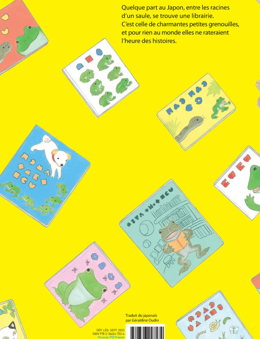 Quelque part au Japon, entre les racines d'un saule, se trouve une librairie. C'est celle de charmantes petites grenouilles, et pour rien au monde elles ne rateraient l'heure des histoires.