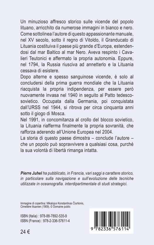 Un minuzioso affresco storico sulle vicende del popolo lituano, arricchito da numerose immagini in bianco e nero. Come sottolinea l'autore di questo appassionante manuale, nel XV secolo, sotto il regno di Vitoldo, il Granducato di Lituania costituiva il paese più grande d'Europa, estendendosi dal mar Baltico al mar Nero. Aveva respinto i Cavalieri Teutonici e affermato la propria autonomia. Eppure, nel 1794, la Russia riusciva ad annetterlo e la Lituania cessava di esistere.