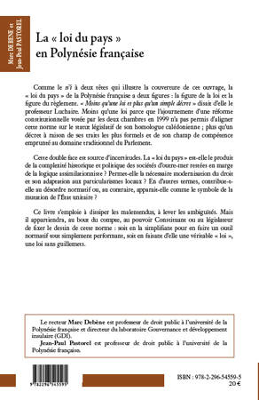 La "loi du pays" de Polynésie française est moins qu'une loi et plus qu'un simple décret. La "loi du pays" est-elle le produit de la complexité historique et politique des sociétés d'outre-mer ? Permet-elle la nécessaire modernisation du droit et son adaptation aux particularismes locaux ? Ce livre s'emploie à lever les ambiguïtés. Mais il appartiendra au pouvoir Constituant ou au législateur de fixer le destin de cette norme : la simplifier pour en faire un outil normatif performant, ou faire d'elle une véritable loi, sans guillemets. (Sous le double patronnage des collections Portes océanes et Droit des collectivités territoriales).