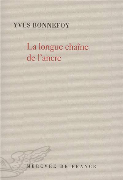 Ce livre rassemble les recherches d’Yves Bonnefoy en poésie depuis son dernier recueil Les planches courbes. Ces recherches tendent à visiter toujours plus le rapport de l’écriture en vers et de l’écriture en prose. La longue chaîne de l’ancre arrime l’esprit humain dans les eaux profondes de l’inconscient, lieu de pensée autant que de vie.