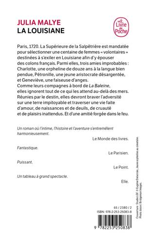 une orpheline de douze ans à la langue bien pendue, Pétronille, une jeune aristocrate désargentée, et Geneviève, une faiseuse d’anges. Comme leurs compagnes à bord de La Baleine, elles ignorent tout ce qui les attend au-delà des mers. Réunies par le destin, elles devront braver l’adversité sur une terre impitoyable et traverser une vie faite d’amour, de naissances et de deuils, de cruauté et de plaisirs inattendus. Et d’une amitié forgée dans le feu.