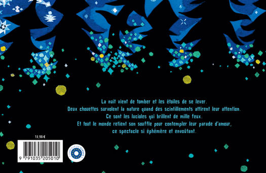 La nuit vient de tomber et les étoiles de se lever. Deux chouettes survolent la nature quand des scintillements attirent leur attention. Ce sont les lucioles qui brillent de mille feux. Et tout le monde retient son souffle pour contempler leur parade d'amour, ce spectacle si éphémère et envoûtant.