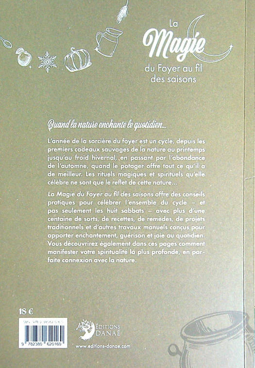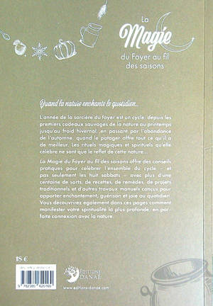 Quand la nature enchante le quotidien… L’année de la sorcière du foyer est un cycle, depuis les premiers cadeaux sauvages de la nature au printemps jusqu’au froid hivernal, en passant par l’abondance de l’automne, quand le potager offre tout ce qu’il a de meilleur. Les rituels magiques et spirituels qu’elle célèbre ne sont que le reflet de cette nature… La Magie du Foyer au fil des saisons offre des conseils pratiques pour célébrer l’ensemble du cycle – et pas seulement les huit sabbats – avec plus d’une centaine de sorts, de recettes, de remèdes, de projets traditionnels et d’autres travaux manuels conçus pour apporter enchantement, guérison et joie au quotidien. Vous découvrirez également dans ces pages comment manifester votre spiritualité la plus profonde, en parfaite connexion avec la nature.