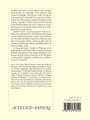 «La Main qui ment»: La journaliste Sonia Granger vient réaliser un reportage sur le nouveau Prix Nobel de biologie. Une guerre civile récente laboure encore les mémoires. Les souvenirs d'inhumanité ne s'effacent pas aisément. Bientôt la vérité se lève, coupante comme un rasoir. Des hommes et des femmes balancent entre vengeance et pardon dans une forme de théâtre-récit où se rejoignent hier et aujourd'hui.