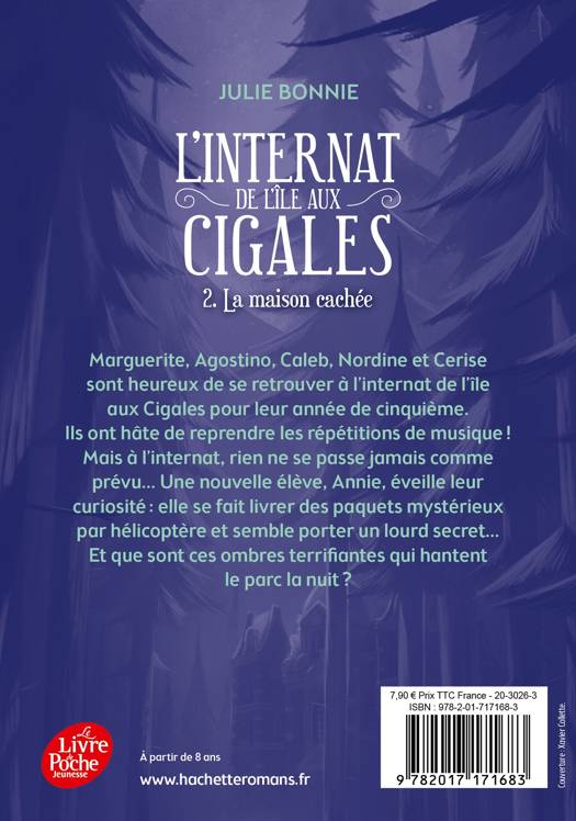 Marguerite, Agostino, Caleb, Nordine et Cerise sont heureux de se retrouver à l'internat de l'île aux Cigales pour leur année de cinquième. Ils ont hâte de reprendre les répétitions de musique ! Mais à l'internat, rien ne se passe jamais comme prévu... Une nouvelle élève, Annie, éveille leur curiosité : elle se fait livrer des paquets mystérieux par hélicoptère et semble porter un lourd secret... Et que sont ces ombres terrifiantes qui hantent le parc la nuit ?