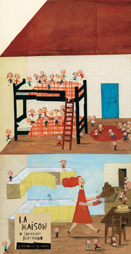 Les nombreux enfants de la maison à deux niveaux de Frédérique Bertrand s’affairent dans toutes les pièces. Ils jouent à cache-cache dans un placard ou une armoire, escaladent, farfouillent, sautent sur le lit... et s'apprêtent à déguster les pâtisseries de maman ou à bricoler dans le garage avec papa.