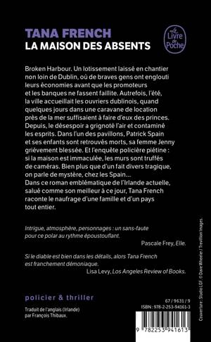 Broken Harbour. Un lotissement laissé en chantier non loin de Dublin, où de braves gens ont englouti leurs économies avant que les promoteurs et les banques ne fassent faillite. Autrefois, l’été, la ville accueillait les ouvriers dublinois, quand quelques jours dans une caravane de location près de la mer suffisaient à faire d’eux des princes. Depuis, le désespoir a grignoté l’air et contaminé les esprits. Dans l’un des pavillons, Patrick Spain et ses enfants sont retrouvés morts et sa femme Jenny, grièvement blessée. Et l’enquête policière piétine : si la maison est immaculée, les murs sont truffés de caméras. Bien plus que d’un fait divers tragique, on parle de mystère, chez les Spain…