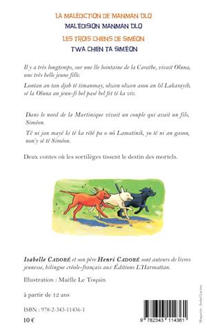Il y a très longtemps, sur une île lointaine de la Caraïbe, vivait Oluna, une très belle jeune fille. Lontan an tan djab té timanmay, olwen olwen asou an lil Lakarayib, sé la Oluna an jenn-fi bel fet té ka viv. / Dans le nord de la Martinique vivait un couple qui avait un fils, Siméon. Té ni jan mayé ki té ka rété pa o nò Lamatinik, yo té ni an gason, non'y sé té Siméon. Deux contes où les sortilèges tissent le destin des mortels.