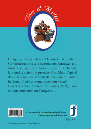 Résumé : Chaque année, à la fête d'Halloween, la tradition est respectée : le docteur Chouette raconte une histoire terrifiante aux enfants du village. Cette fois, son ancêtre, « Charline la maudite », tient le premier rôle. Elle vivait au village il y a très longtemps, connaissait le secret des plantes, soignait et guérissait les villageois, mais un jour, un mystérieux et inquiétant inconnu arrive et empoisonne les esprits de la population. Charline est persécutée et chassée de Chanterelle. Depuis, reviendrait-elle hanter les lieux où elle a dramatiquement vécu ? S’agit-il d’une légende ou son fantôme existe-il vraiment ? Face à des phénomènes inexpliqués, Molly, Tom et leurs amis mènent l’enquête…