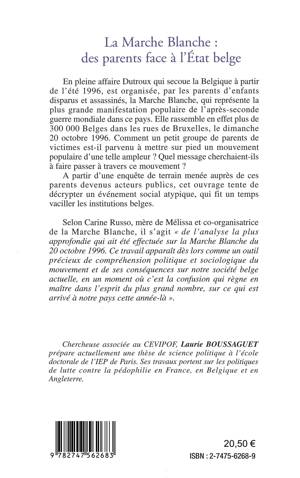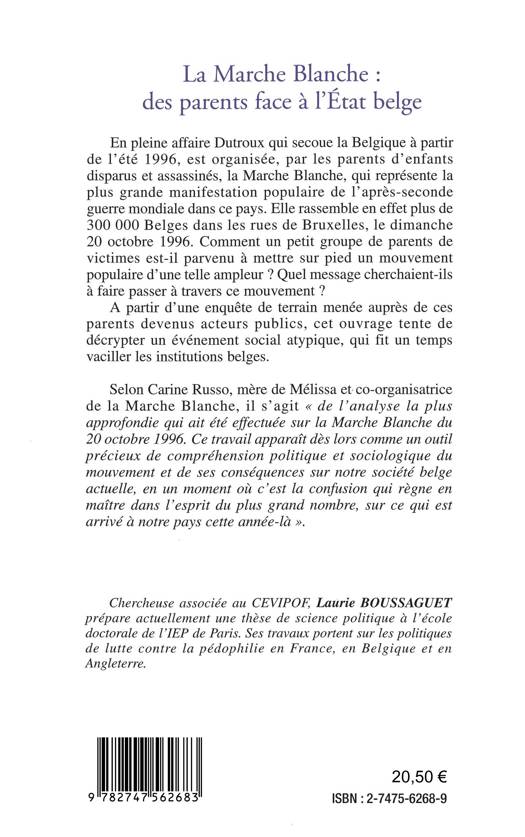 En pleine affaire Dutroux qui secoue la Belgique à partir de l'été 1996, est organisée, par les parents des enfants disparus et assassinés, La Marche Blanche qui représente la plus grande manifestation populaire de l'après-guerre mondiale dans ce pays. A partir d'une enquête de terrain menée auprès des parents victimes devenus acteurs publics, cet ouvrage décrypte un événement social atypique, qui fit un temps vaciller les institutions belges.