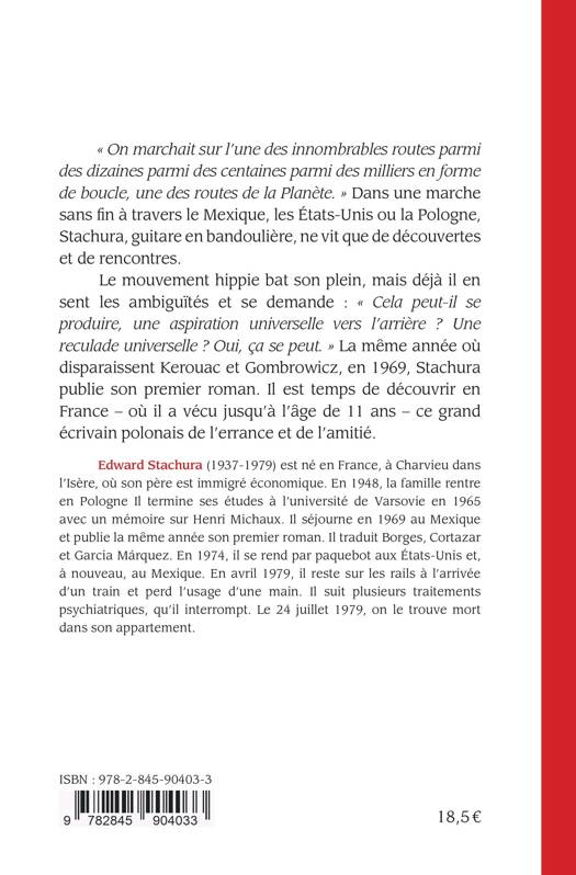 « Découverte de ceci que l'éternité, pour qu'elle soit telle et pas autre, doit commencer : un jour, quelque part, à partir de quelqu'un - par exemple : maintenant, ici, à partir de moi-même. » Cette note de carnet datée de 1969 donne la mesure de la quête de Stachura, proche de Kerouac, Ginsberg et de la Beat Generation américaine.