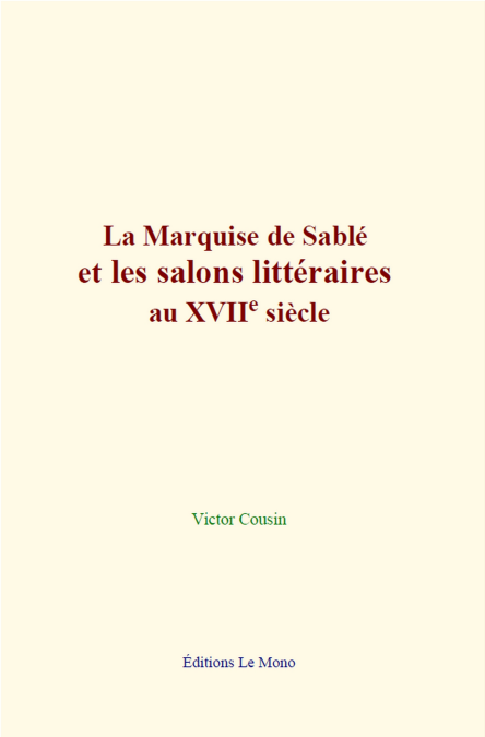 Il y a deux parties dans la vie de Mme de Sablé : l’une où elle est une femme du monde, brillante et recherchée, demeurant près du Louvre et à la Place-Royale, les deux quartiers à la mode ; l’autre, où elle se retire au faubourg Saint-Jacques, à Port-Royal ; et c’est de ce moment que date sa plus grande renommée, le salon de l’aimable recluse ayant été plus que jamais le rendez-vous de tout ce qu’il y avait de mieux à Paris, et même étant devenu le berceau d’un nouveau genre de littérature.