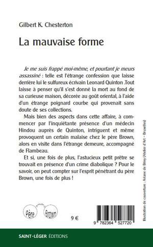 Je me suis frappé moimême,et pourtant je meurs assassiné : telle est l'étrange confessionque laisse derrière lui le sulfureux écrivain Leonard Quinton. Tout laisse à penser qu'il s'est donné la mortau fond de sa curieuse maison, décorée au goût oriental, à l'aide d'un étrange poignard courbe quiprovenait sans doute de ses collections.Mais bien des aspects dans cette affaire, à commencer par l'inquiétante présence d'un médecin Hindouauprès de Quinton, intriguent et même provoquent un certain malaise chez le père Brown, alors en visitedans l'étrange demeure, accompagné de Flambeau.Et si, une fois de plus, l'astucieux petit prêtre se trouvait en présence d'un crime diabolique ? Pour lesavoir, on peut compter sur l'esprit pénétrant du père Brown, une fois de plus ! A propos de l'auteur : Gilbert Keith Chesterton (18741936) est une figure majeure de la littérature anglaise, auteur d'une oeuvre prolifique d'essayiste, de polémiste, de biographe, et de romancier. Nul mieux que lui sut marier le paradoxe et l'art du contrepied. Il fut, dès 1901, l'un des premiers théoriciens du roman policier avec un article demeuré célèbre, A Defense of Detective Stories.