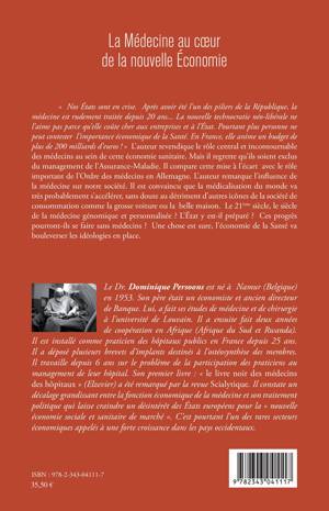 Revendiquant le rôle incontournable et central des médecins au sein de l'économie sanitaire, l'auteur regrette qu'ils soient exclus du management de l'Assurance-Maladie. Probablement, la médicalisation du monde va s'accélérer, sans doute au détriment d'autres icônes de la société de consommation, comme la grosse voiture ou la belle maison. Le 21e siècle, siècle de la médecine génomique et personnalisée va-t-il faire des progrès sans les médecins ? L'Economie de la Santé va bouleverser les idéologies en place.
