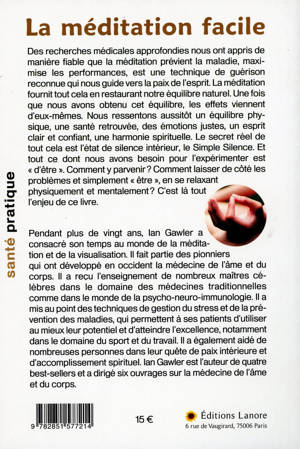 Des recherches médicales approfondies nous ont appris de manière fiable que la méditation prévient la maladie, maximise les performances, et est une technique de guérison reconnue qui nous guide vers la paix de l'esprit. La méditation fournit tout cela en restaurant notre équilibre naturel. Une fois que nous avons obtenu cet équilibre, les effets viennent d'eux-mêmes. Nous ressentons aussitôt un équilibre physique, une santé retrouvée, des émotions justes, un esprit clair et confiant, une harmonie spirituelle. Le secret réel de tout cela est l'état de silence intérieur, le Simple Silence. Et tout ce dont nous avons besoin pour l'expérimenter est "d'être". Comment y parvenir ? Comment laisser de côté les problèmes et simplement "être", en se relaxant physiquement et mentalement ? C'est là tout l'enjeu de ce livre.